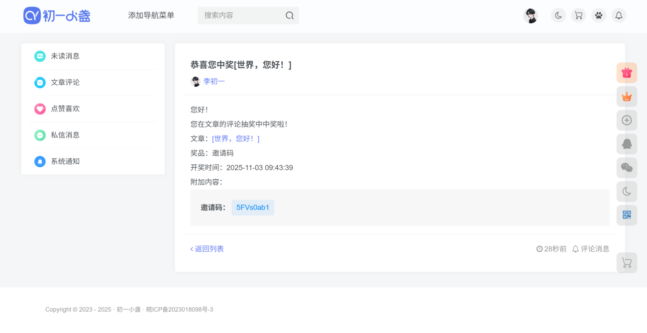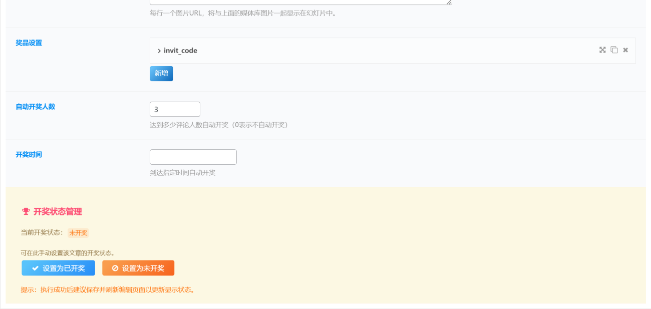 • 发布文章——滑动到最底部——配置评论抽奖信息——查看文章测试评论抽奖功能